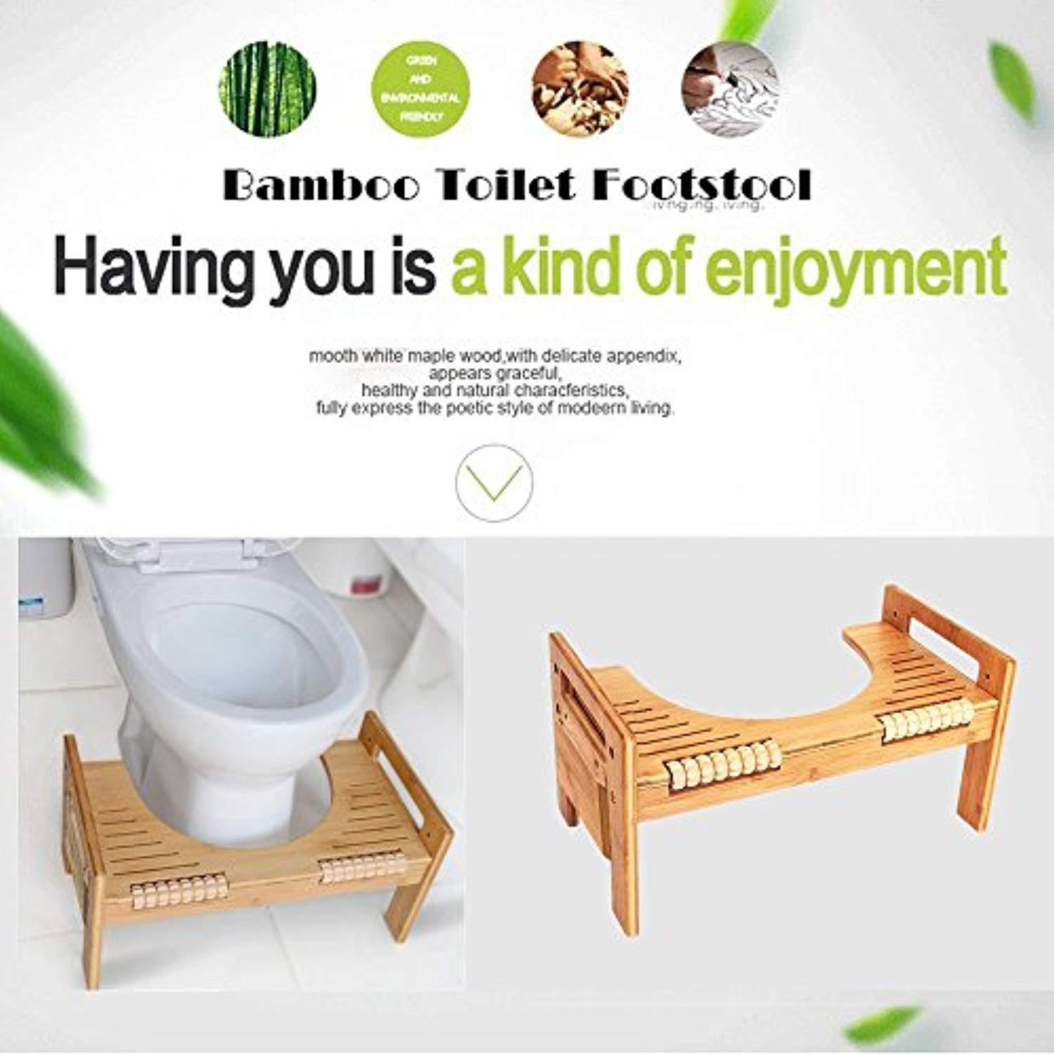 MallBoo Adjustable Bamboo Squatting Toilet Stool Portable Bathroom Squatting Urinal with Double Foot Massager and Box(7" and 9")