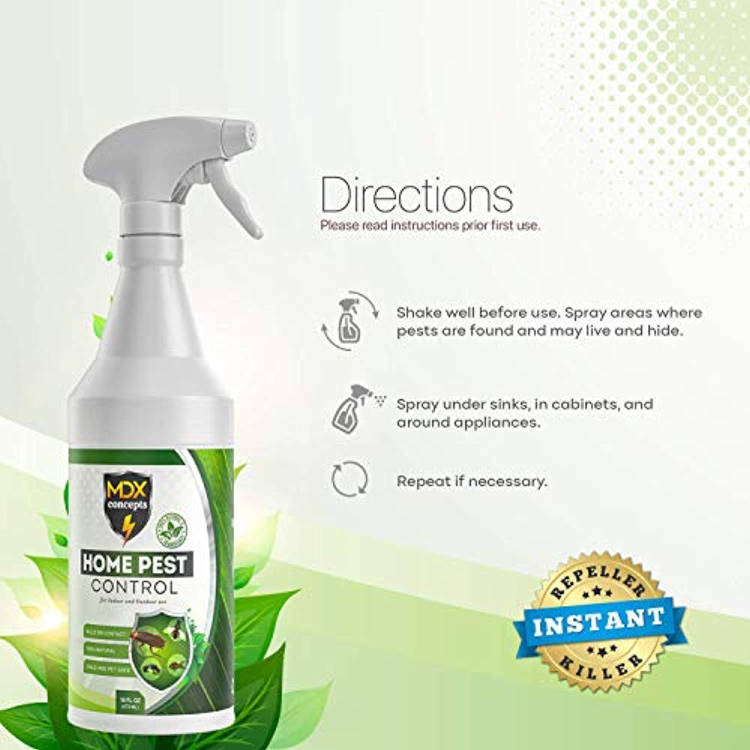 MDXconcepts Organic Home Pest Control Spray - Kills & Repels, Ants, Roaches, Spiders, and Other Pests Guaranteed - All Natural Insect Killer - Child & Pet Safe - Indoor/Outdoor Spray - 16oz