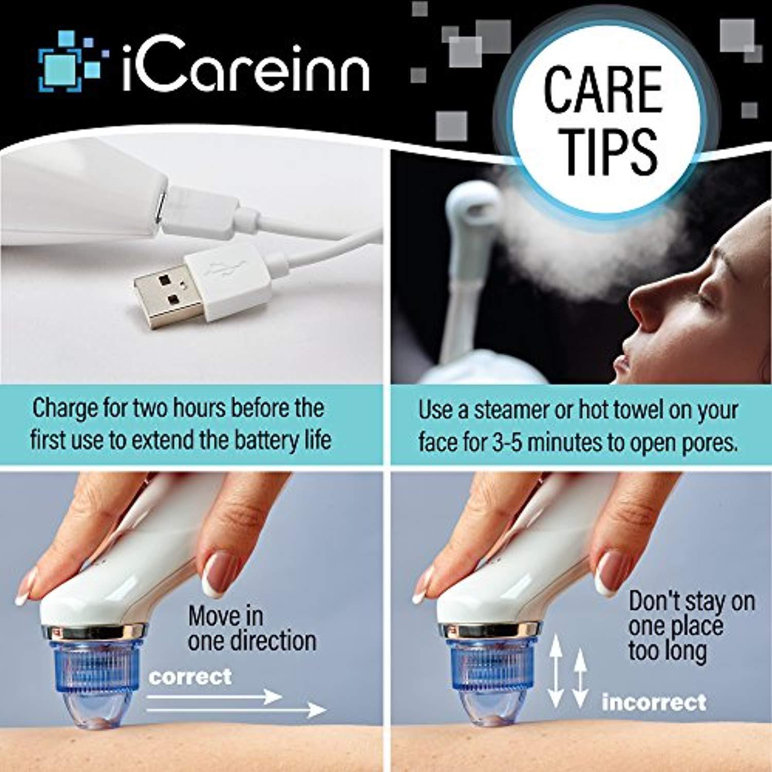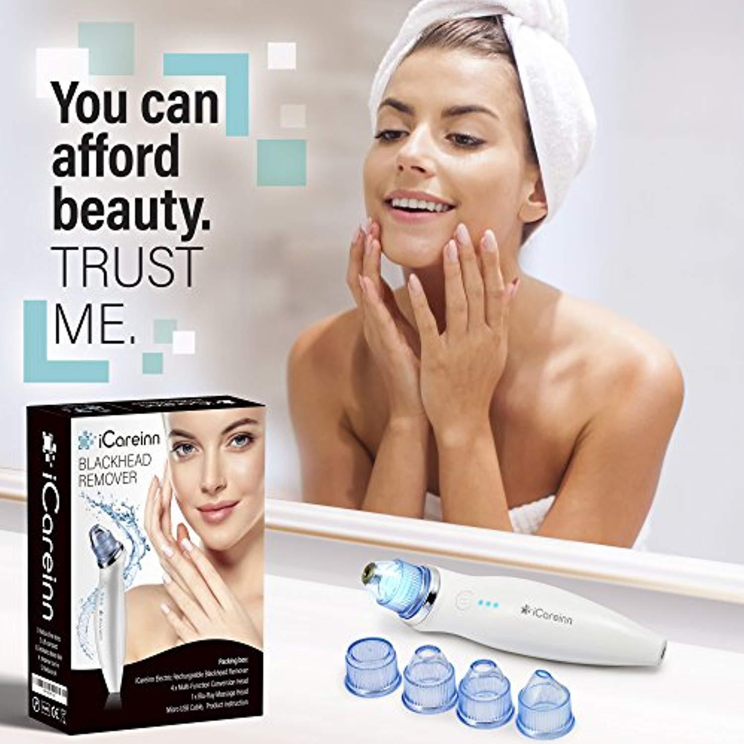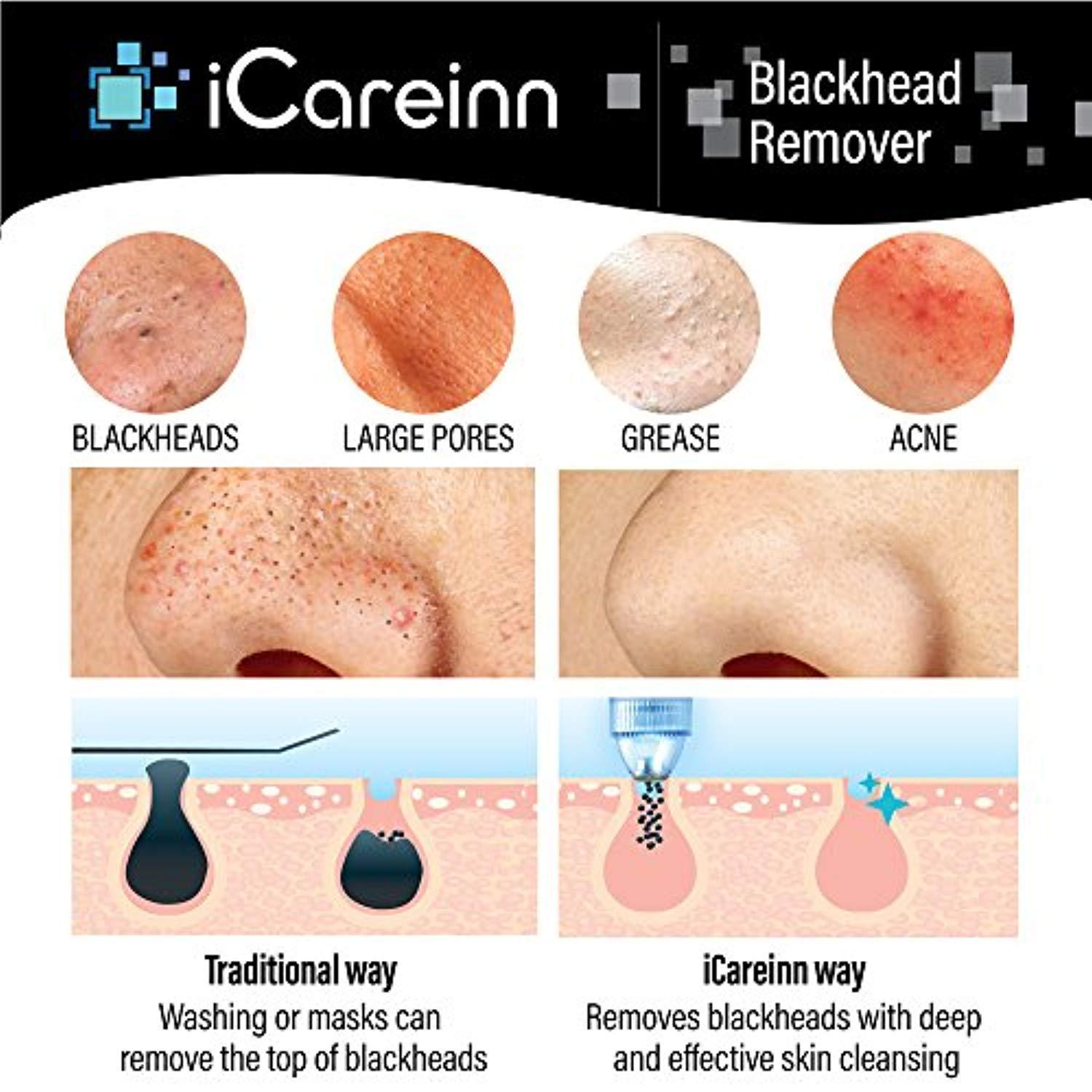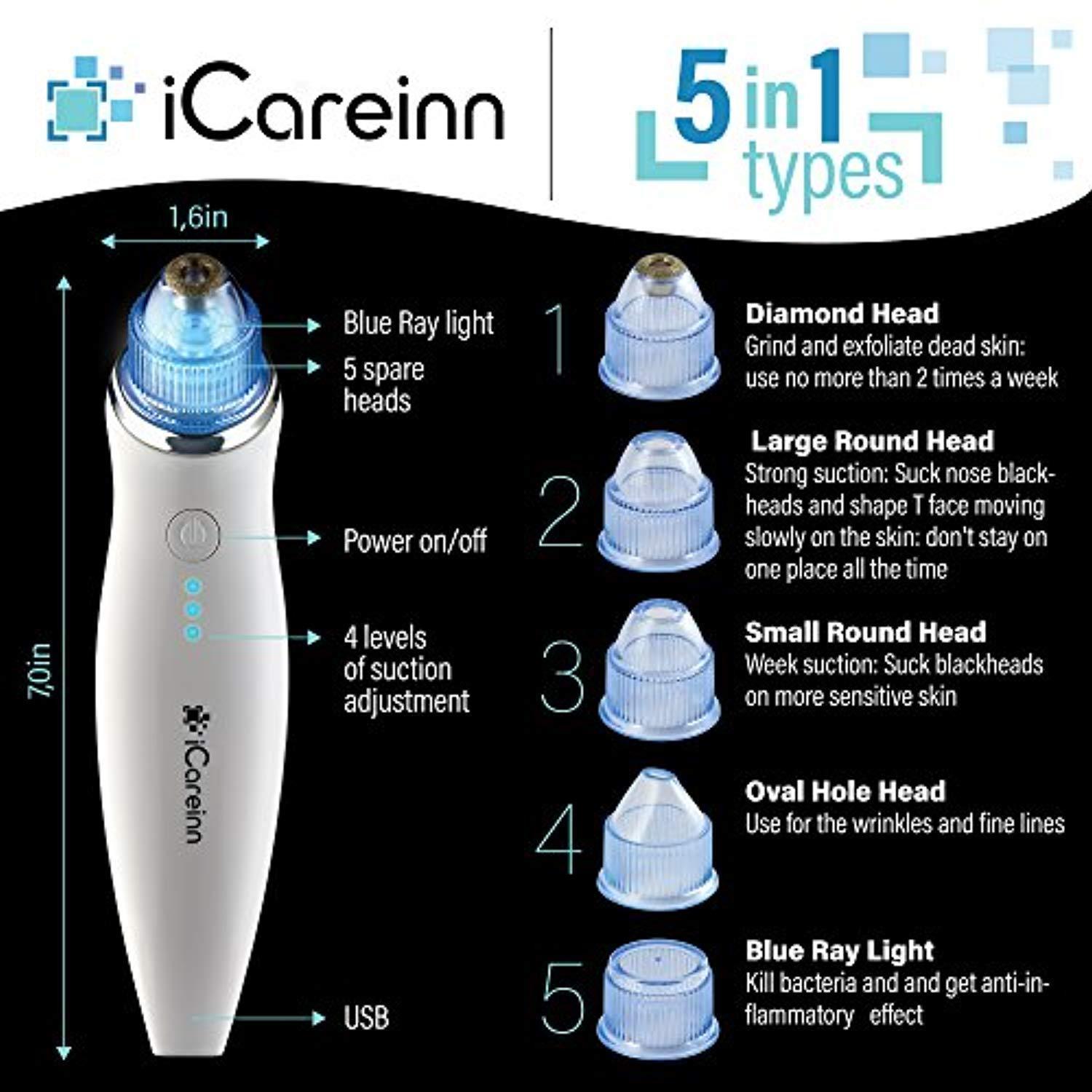 iCareinn Blackhead Remover [Newest 2018] - Rechargeable Pore Vacuum Suction Microdermabrasion Machine Comedone Extractor Acne Remover Electric Skin Cleanser Peeling Tool - Powerful Waterproof Cleaner