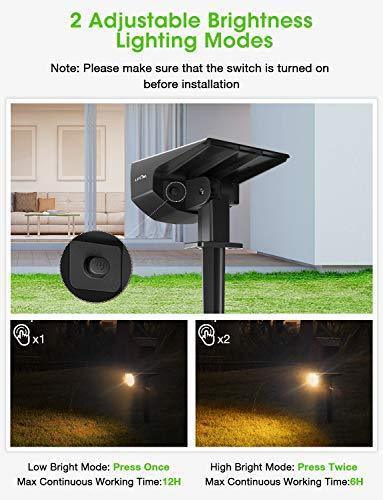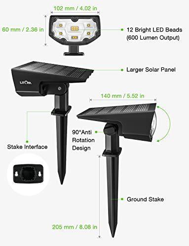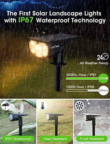 LITOM 12 LED Solar Landscape Spotlights, IP67 Waterproof Solar Powered Wall Lights 2-in-1 Wireless Outdoor Solar Landscaping Lights for Yard Garden Driveway Porch Walkway Pool Patio 2 Pack Warm White