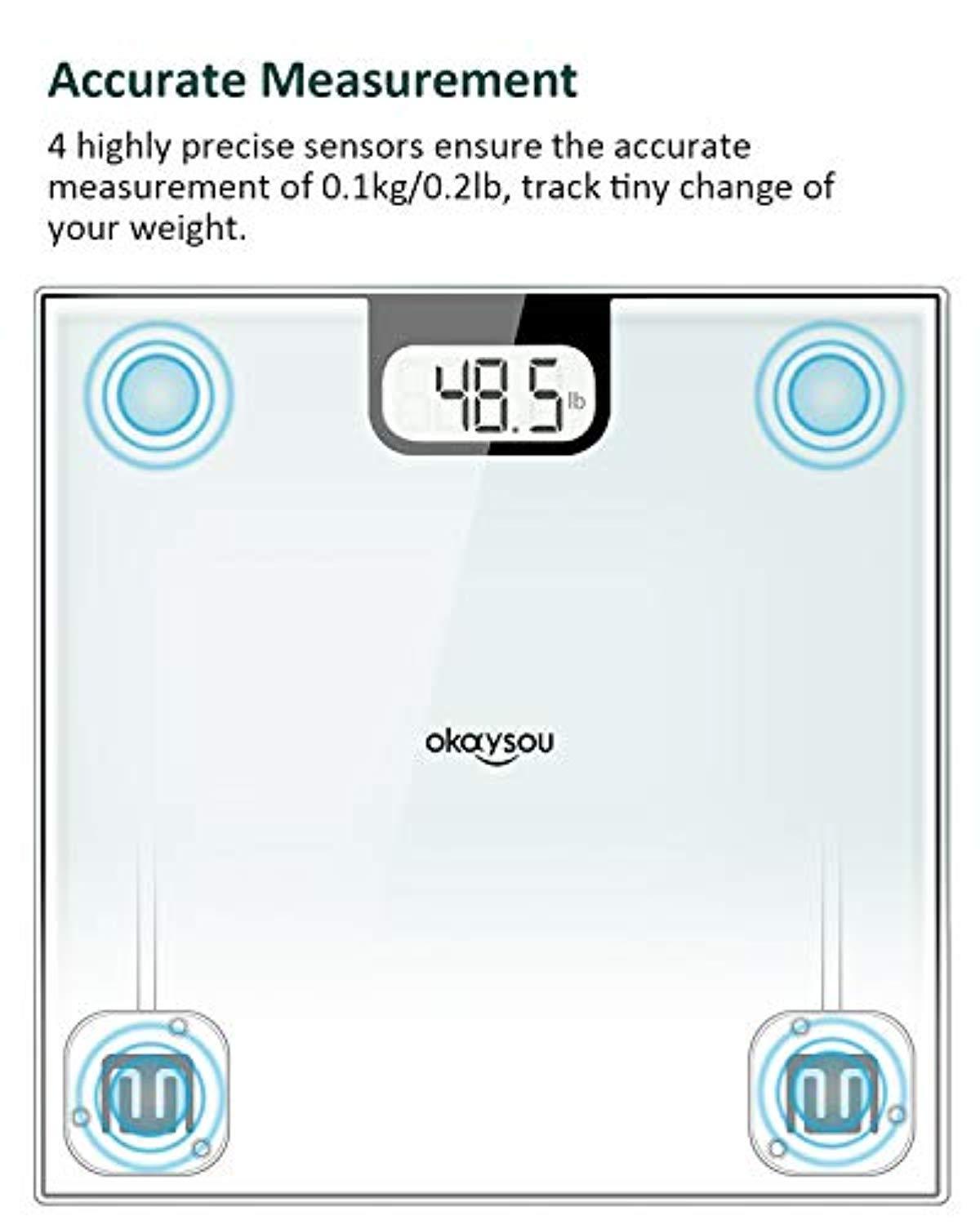 Okaysou All-New Bathroom Scale, Accurate Digital Body Weight Scale with Large 3.6" Backlit LCD Display, Step-On Technology, 400 Pound Capacity