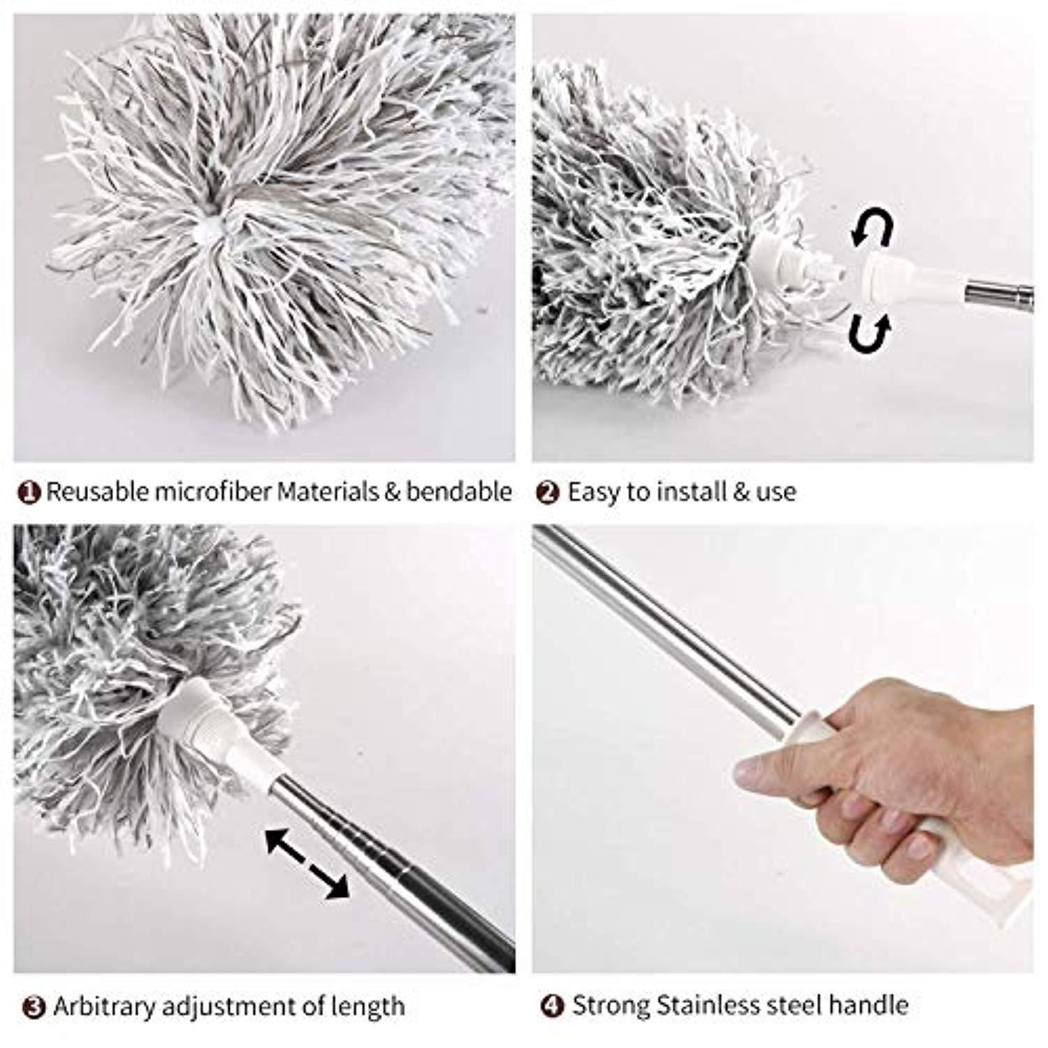 💗Super Adsorption - Super strong electrostatic adsorption capacity, firmly adsorbing small dust and hair. It does not dust when cleaned, does not lint, and is convenient for cleaning the slit angle. 🌈82" Long Duster for High Ceiling - Extendable Dusters for Cleaning Interior Roof/Cobweb/Ceiling Fan/Furniture/Keyboard/Cars etc. 🌸More Safe Way - Extendable and bendable makes it ultra-easy to clean anywhere in your home. Cleaning dusters can be used by men, women, kids and ideal for senior citizens. 💦Washable Dusters Head - Microfiber duster is easy to keep clean. Dusters head is detachable, simply slide the microfiber top off the duster core and hand wash with water or machine washable! 📞100% Assurance Service - We offer you 12 Months Warranty and 24 Hours Customer Service. Any problems about the Feather Dusters, please send email to us, it is our pleasure to help you.