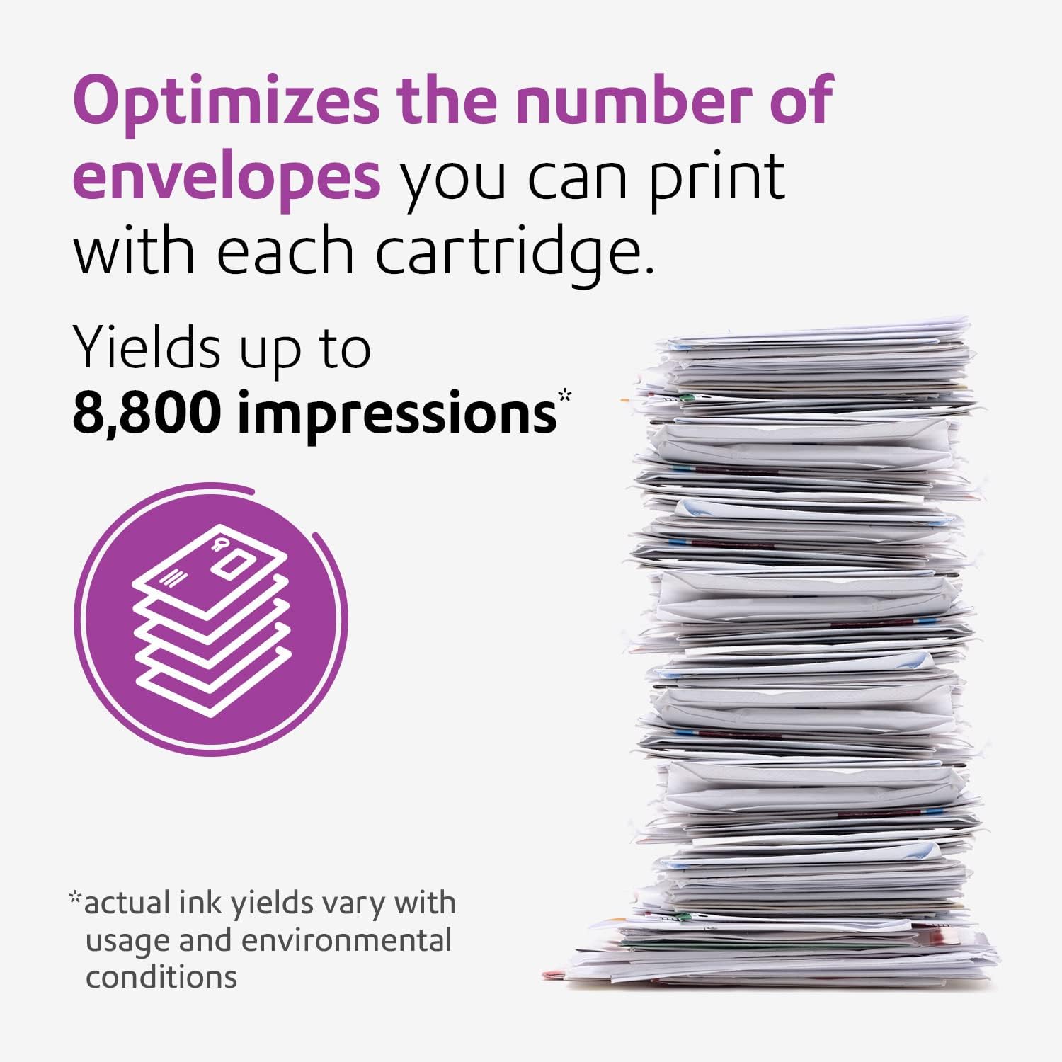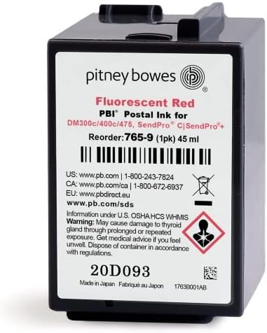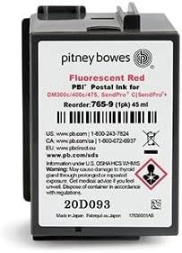 - Fluorescent Red Postal Ink: Tested in millions of cycles, for readability and performance, the 765-9 red ink cartridge optimizes the number of envelopes you can print with each cartridge, yielding up to 8800 impressions